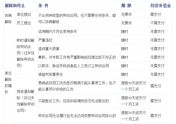 最全的勞動(dòng)合同解除及賠償一覽表